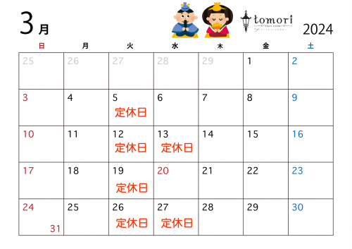 3月の定休日のお知らせ|トモリヘアルーム