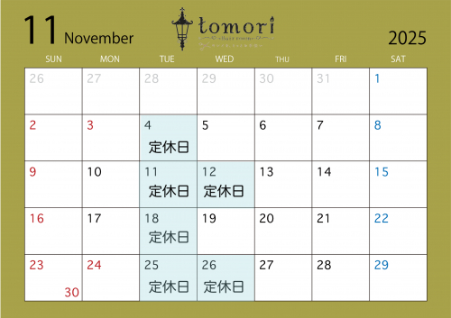 トップ > News 11月の定休日のお知らせ☆tomori Hair room(トモリヘアルーム) 富士見市みずほ台 美容室メテオ正規取扱店