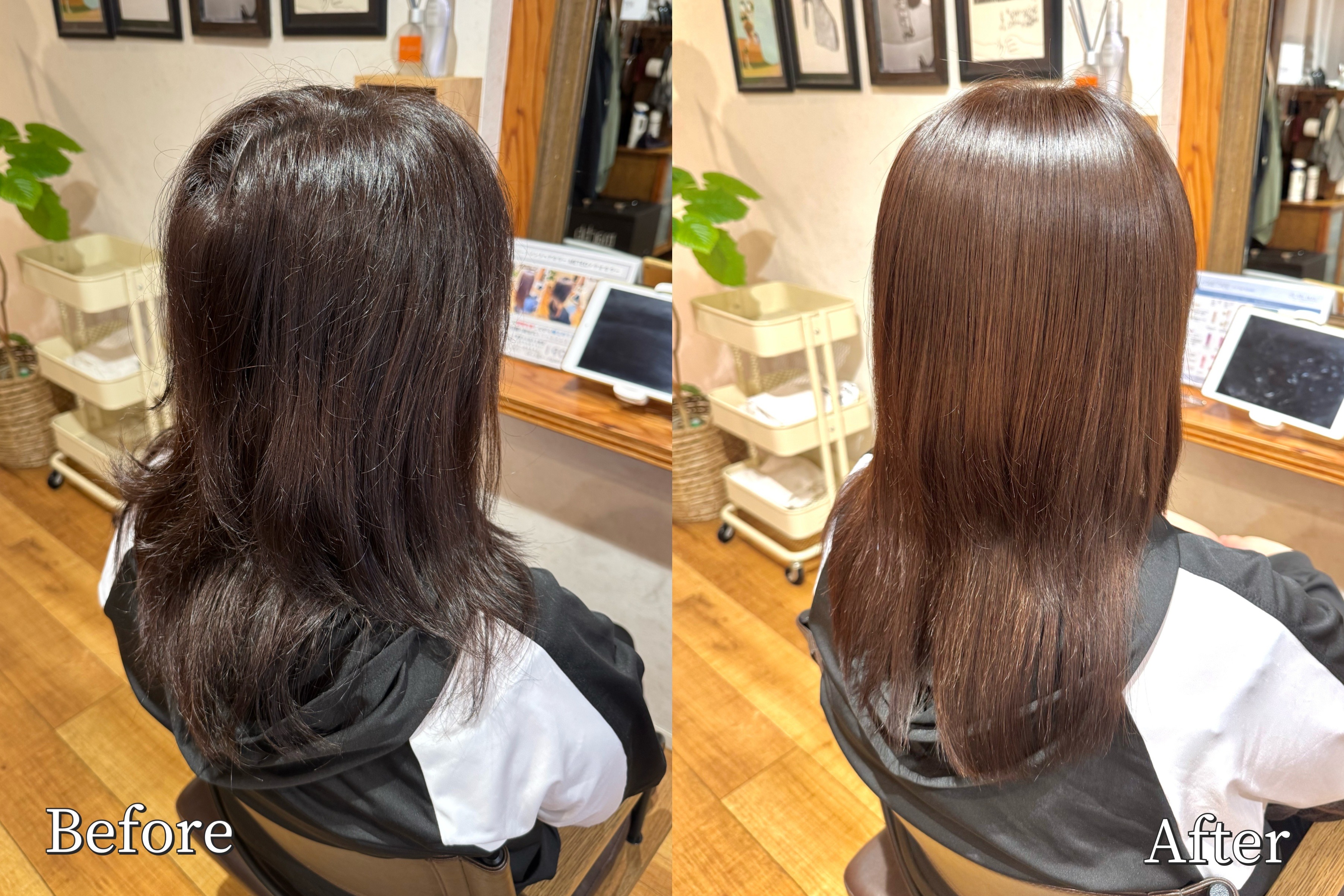同日のヘアカラー施術*もダメージレスでツヤ髪色に仕上がるので安心して施術可能です。